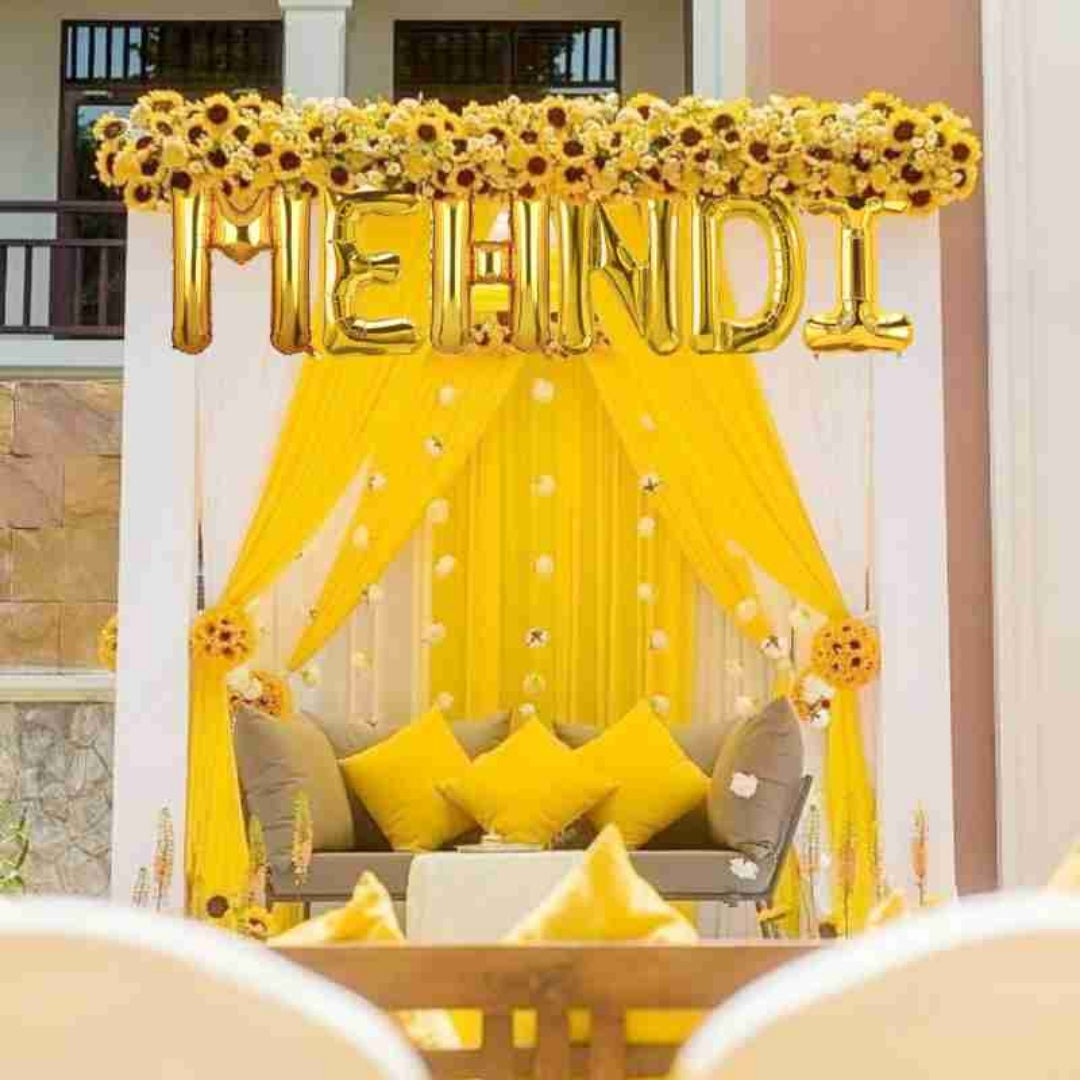 Mehendi functions at home, banquet halls, outdoor garden setups, bridal entry points, or stage decoration.