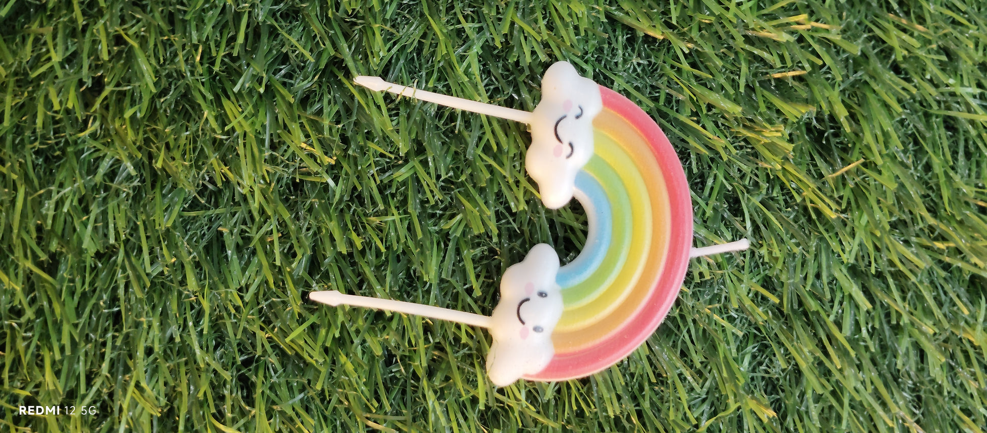 1 colorful rainbow-shaped candle